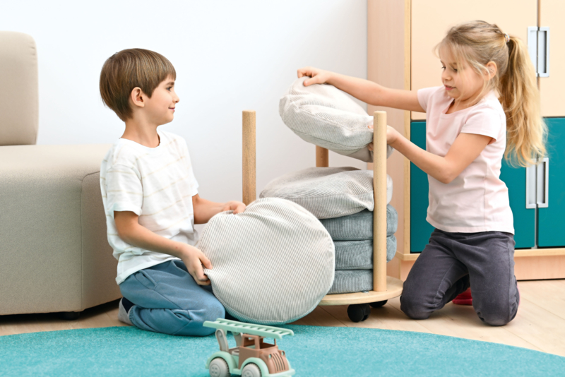 Multifunctioneel te gebruiken: als zitkussen op de grond of bankje, als stapstenen/staprondjes, positiekussens, om een parcours mee te maken of op een andere manier mee te spelen