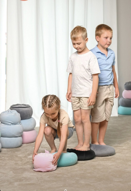 Multifunctioneel te gebruiken: als zitkussen op de grond of bankje, als stapstenen/staprondjes, positiekussens, om een parcours mee te maken of op een andere manier mee te spelen