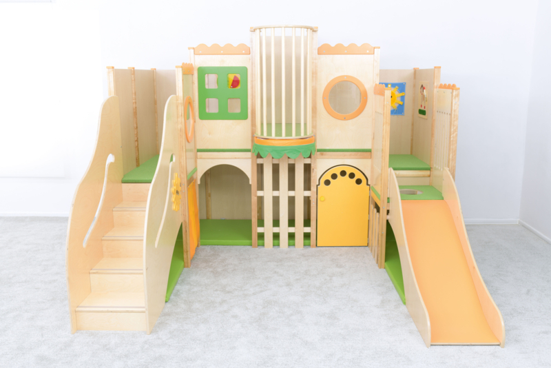 Let op: al onze speelkastelen dienen aan de vloer of aan de muur worden bevestigd met montagetape. Montage-instructies en accessoires voor beide opties worden meegeleverd.