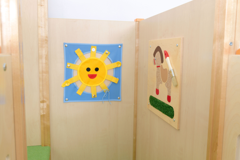 Sensorische en motorische elementen nodigen uit tot ontdekking en beleving met alle zintuigen. Maar er is ook ruimte voor kindjes om zich terug te trekken en te chillen
