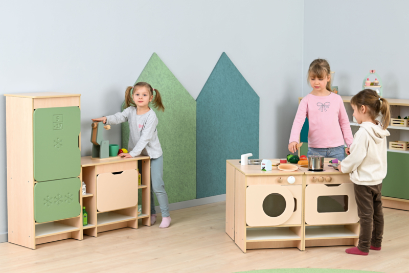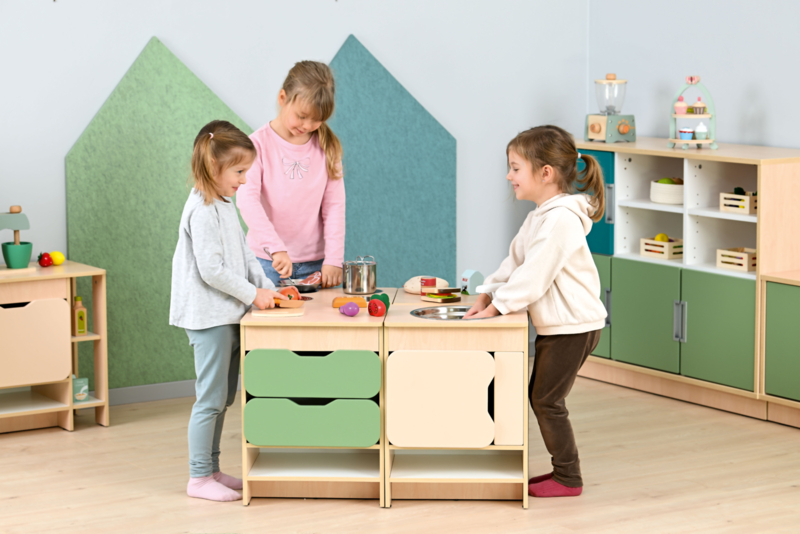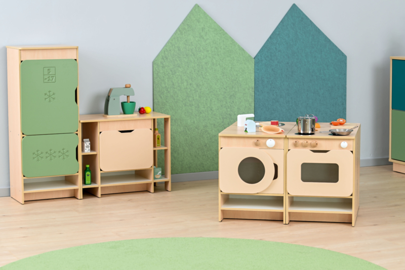 OverzichtGrote (kleurrijke) speelkeuken/speelhoek ideaal voor intensief professioneel gebruik.