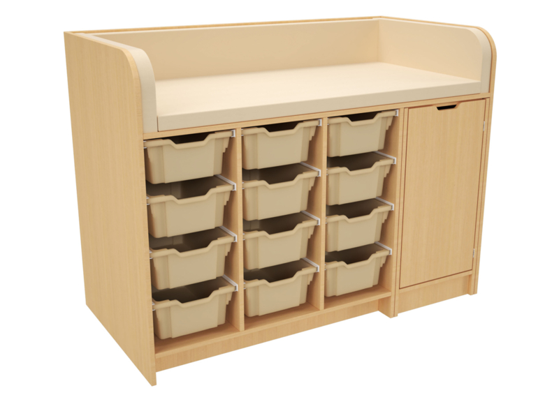 Verschoontafel / commode kinderopvang met opberglades (en aankleedkussen) WIT/NATUUR met/zonder trap